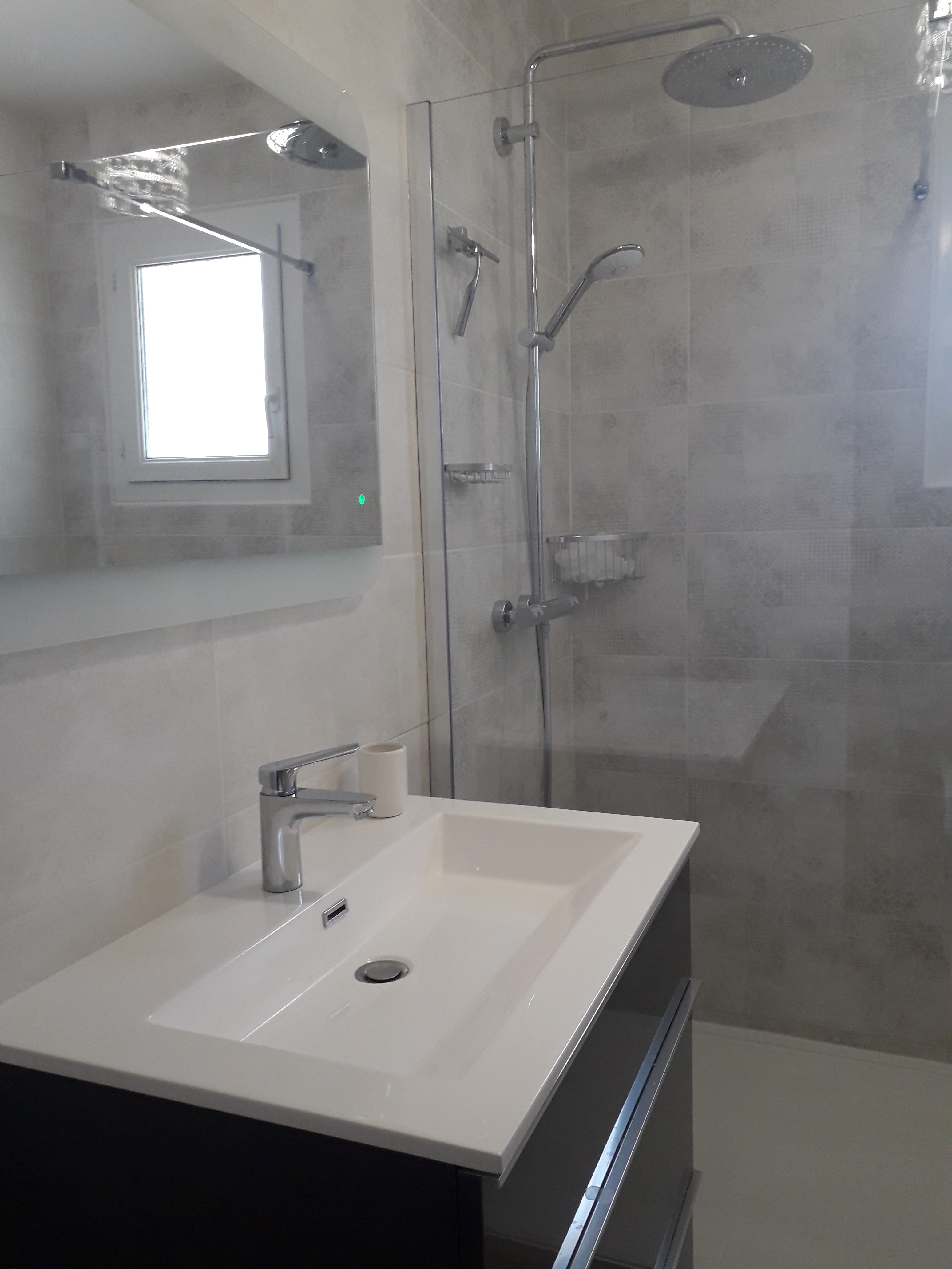 Réfection d'une salle d'eau Monsieur Le Nuff, toujours attentif à nos souhaits, s'est attaché à bien faire le travail tout au long du chantier. Travail propre et soigné, délais respectés, aucune mauvaise surprise et tout cela avec un bon rapport qualité prix. Le résultat est totalement à la hauteur de nos attentes et nous ne pouvons que recommander cet artisan, sérieux, professionnel et sympathique.