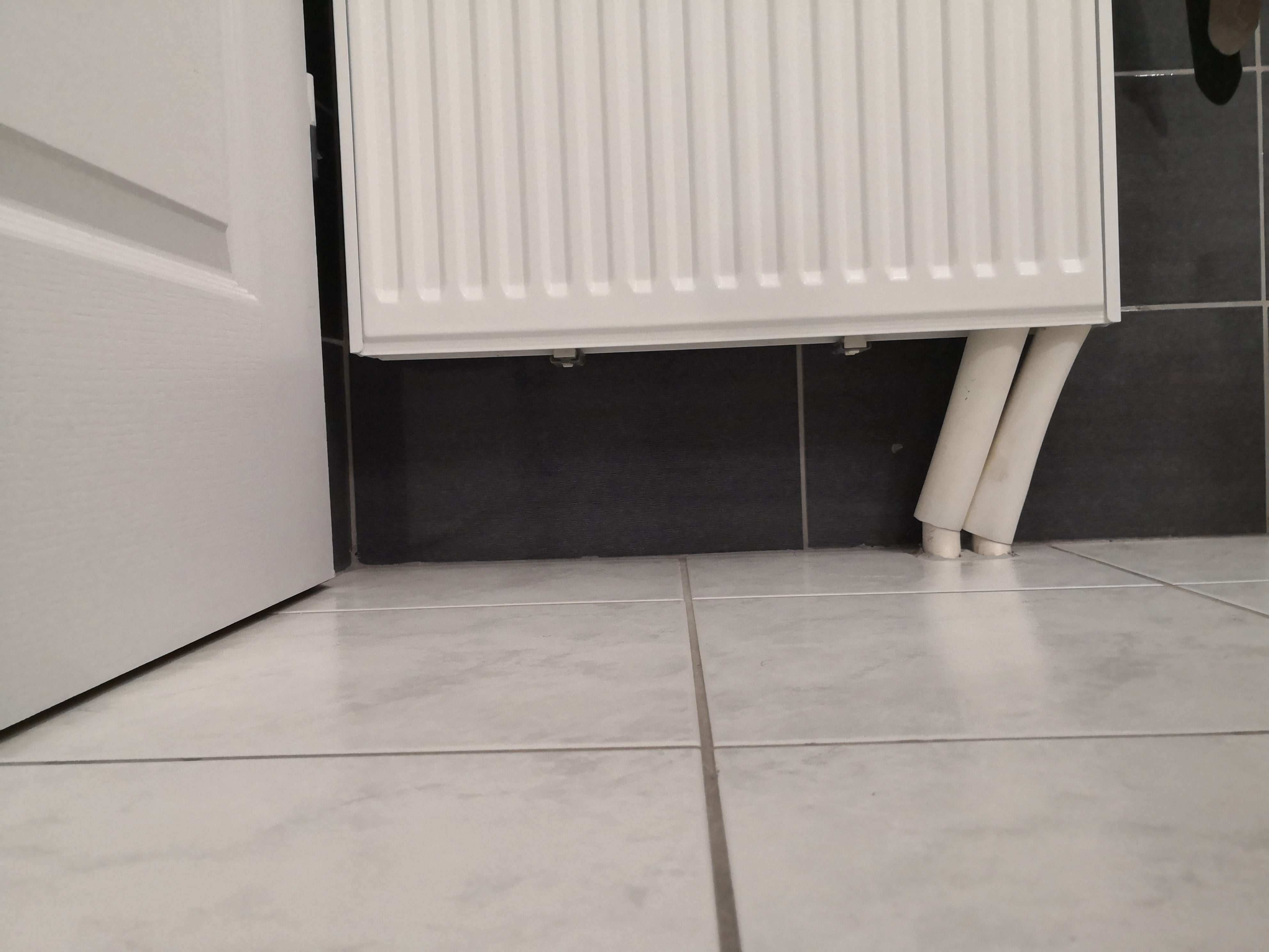Appeler pour un changement de radiateur , vous pouvez voir sur les photos le joli travail 🙄 , il est plus large que celui d'origine de 100mm (le chauffagiste qui pourtant avait bien pris les mesures du radiateur défaillant avant de passer commande) et du coup pas assez d'espace pour faire la purge (inutile d'après lui). La clef de purge a été mise par Mr Martinez est en appuis contre le coin du mur (admirez le cadre de porte rayé par cette clé et je n'ose pas imaginer le carrelage) . Très déçu , je ne l'ai pas rappelé dans la mesure que cette erreur de dimensions pourtant flagrante (dont en plus il s'en ai rendu compte avant de déballer le nouveau radiateur) est impardonnable de la part d'un professionnel .