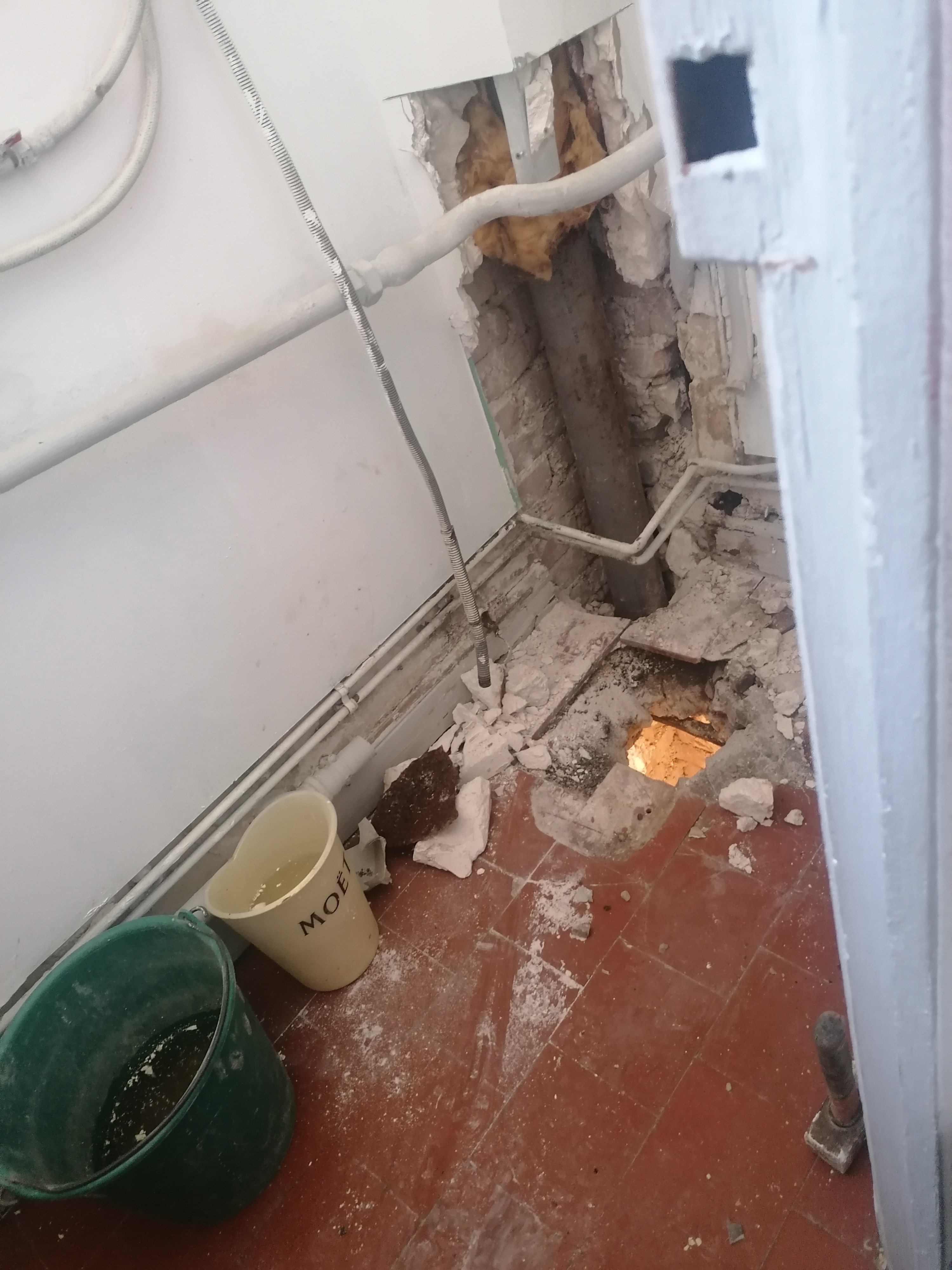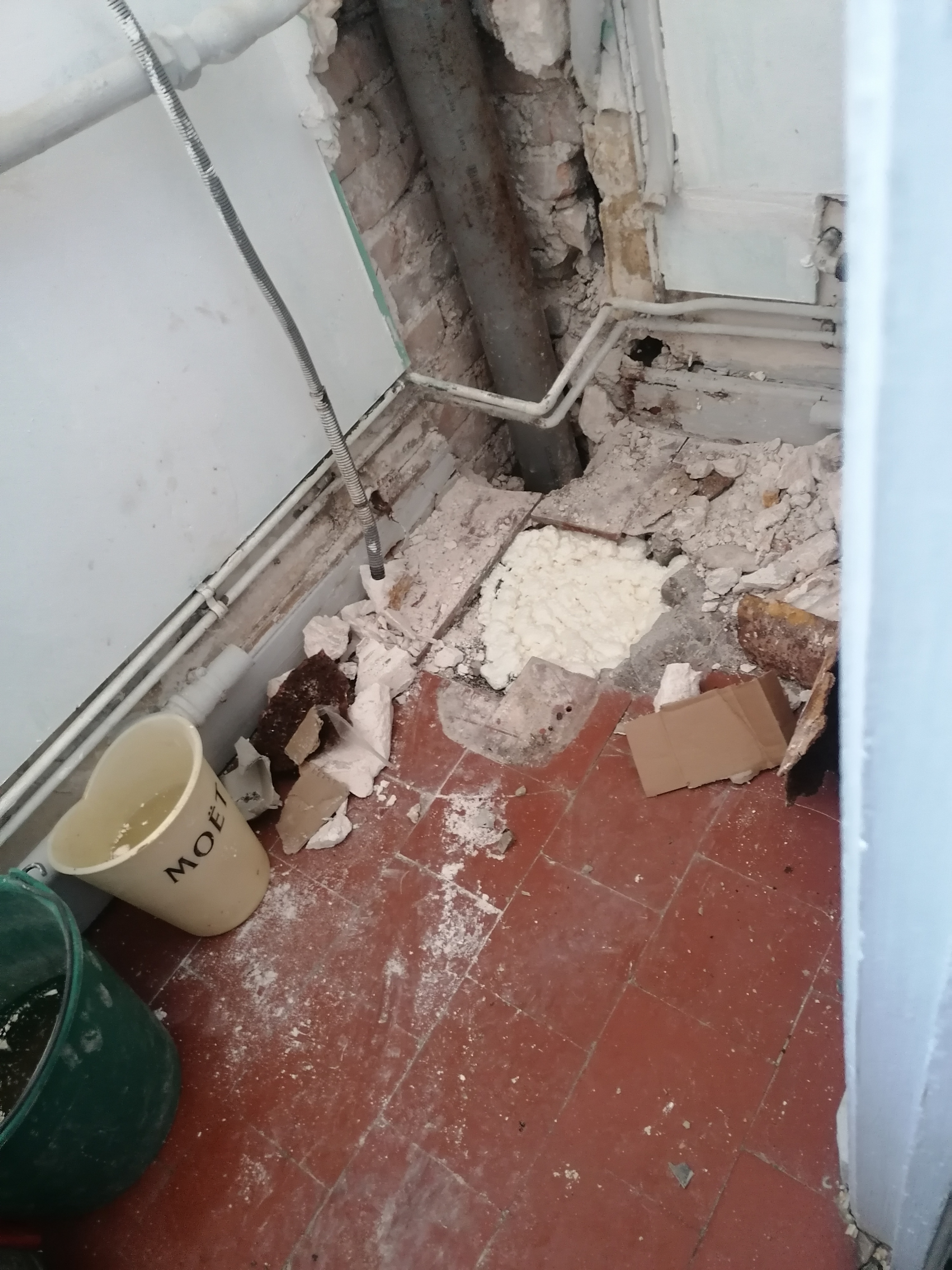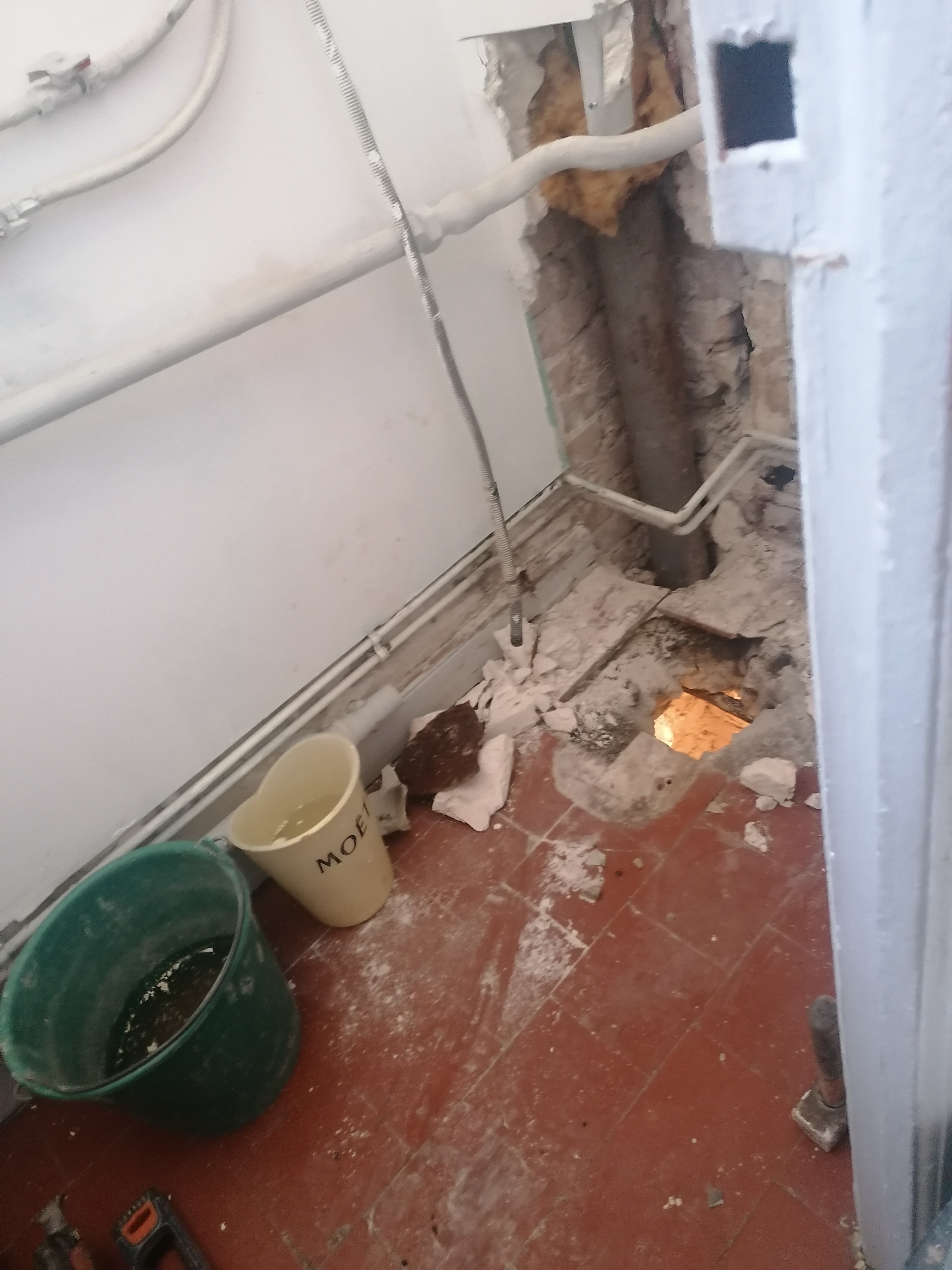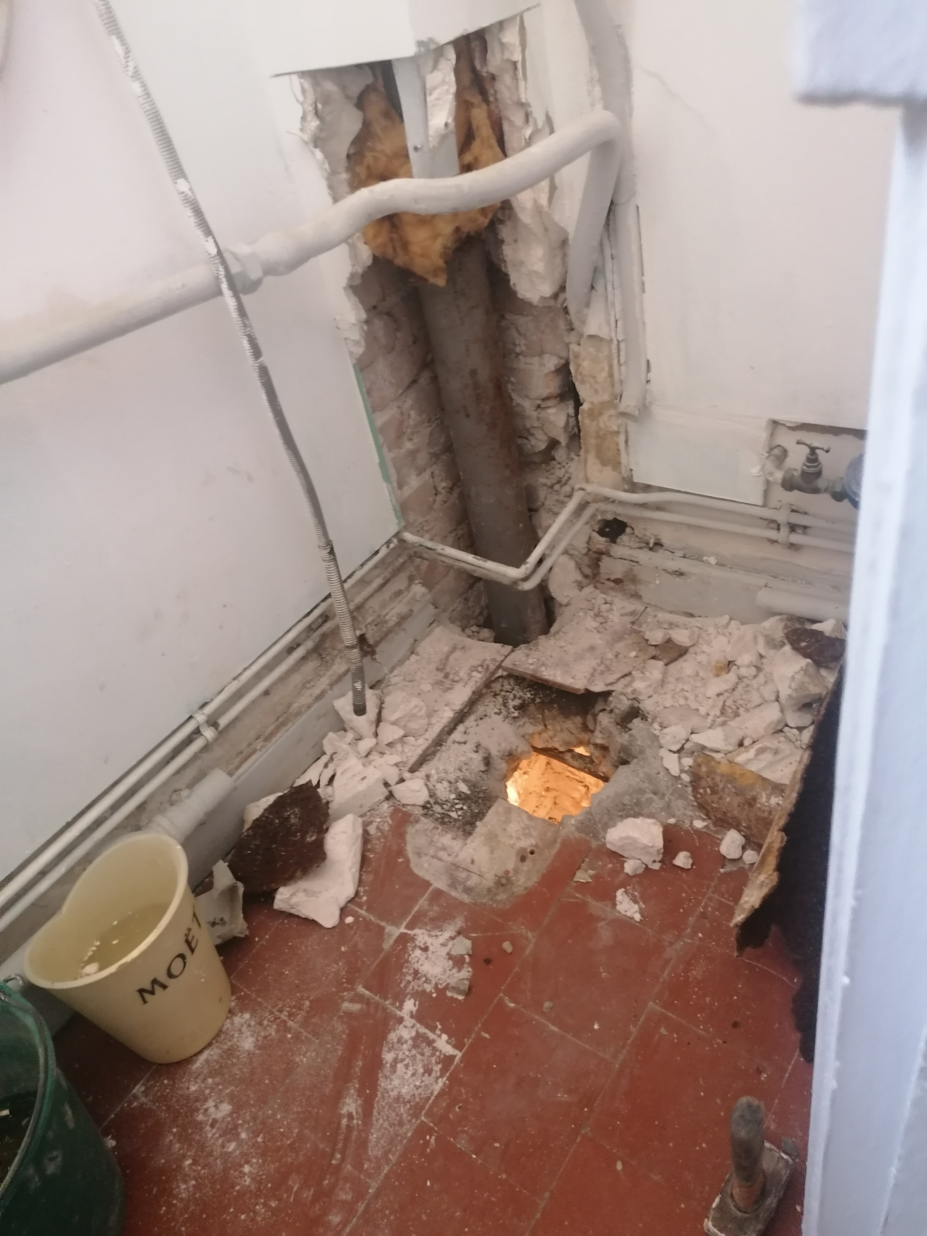 Un changement de canalisations. Et ils ont coulé le béton au sol d'ailleurs. J'ai un trou au sol. Un plaque au qui est non hydrofuge alors que c'est une pièce d'eau. Des toilettes pas droit. Et un responsable qui me raccroche au nez et qui veut pas refaire le chantier pour 3200e