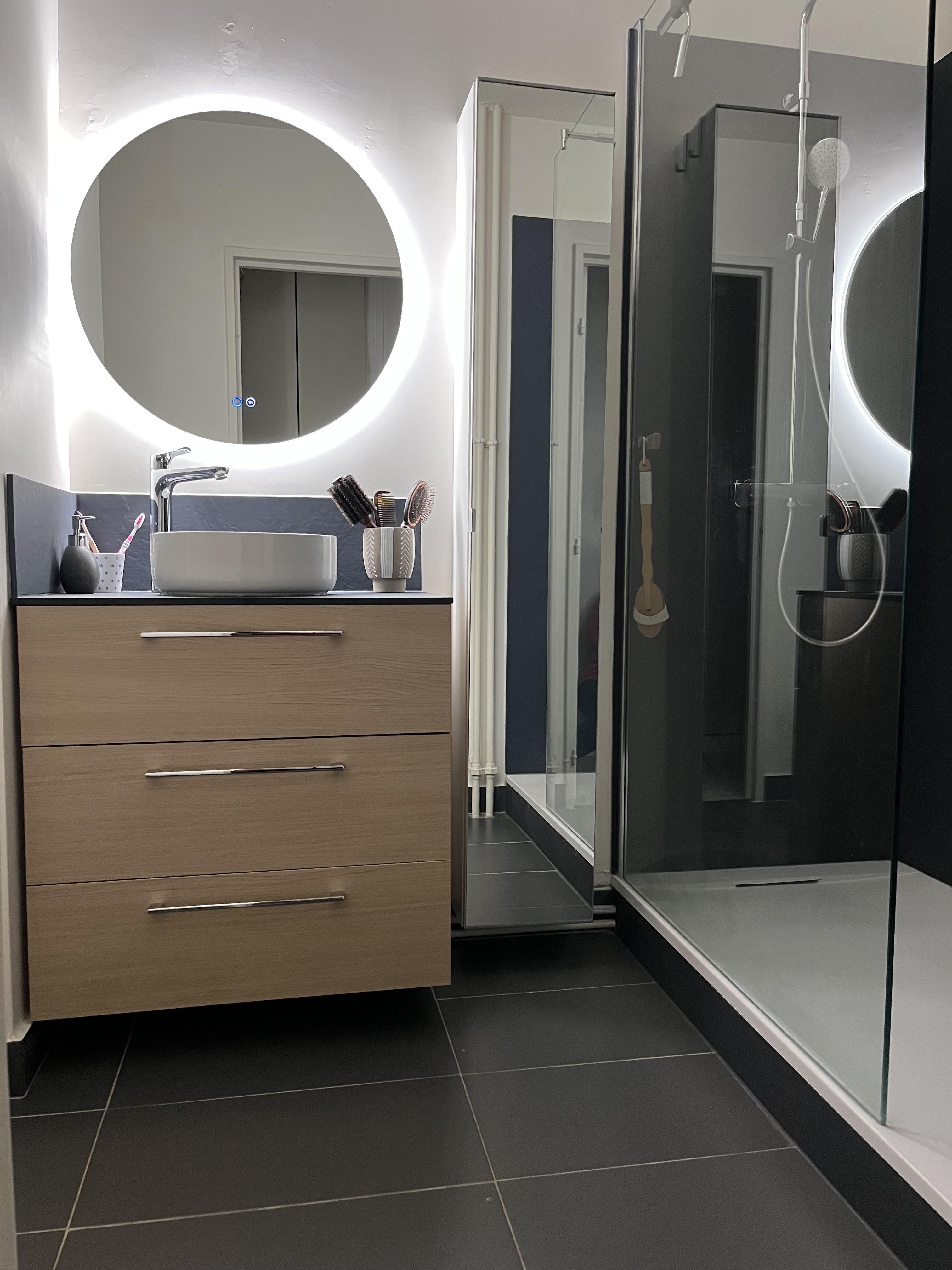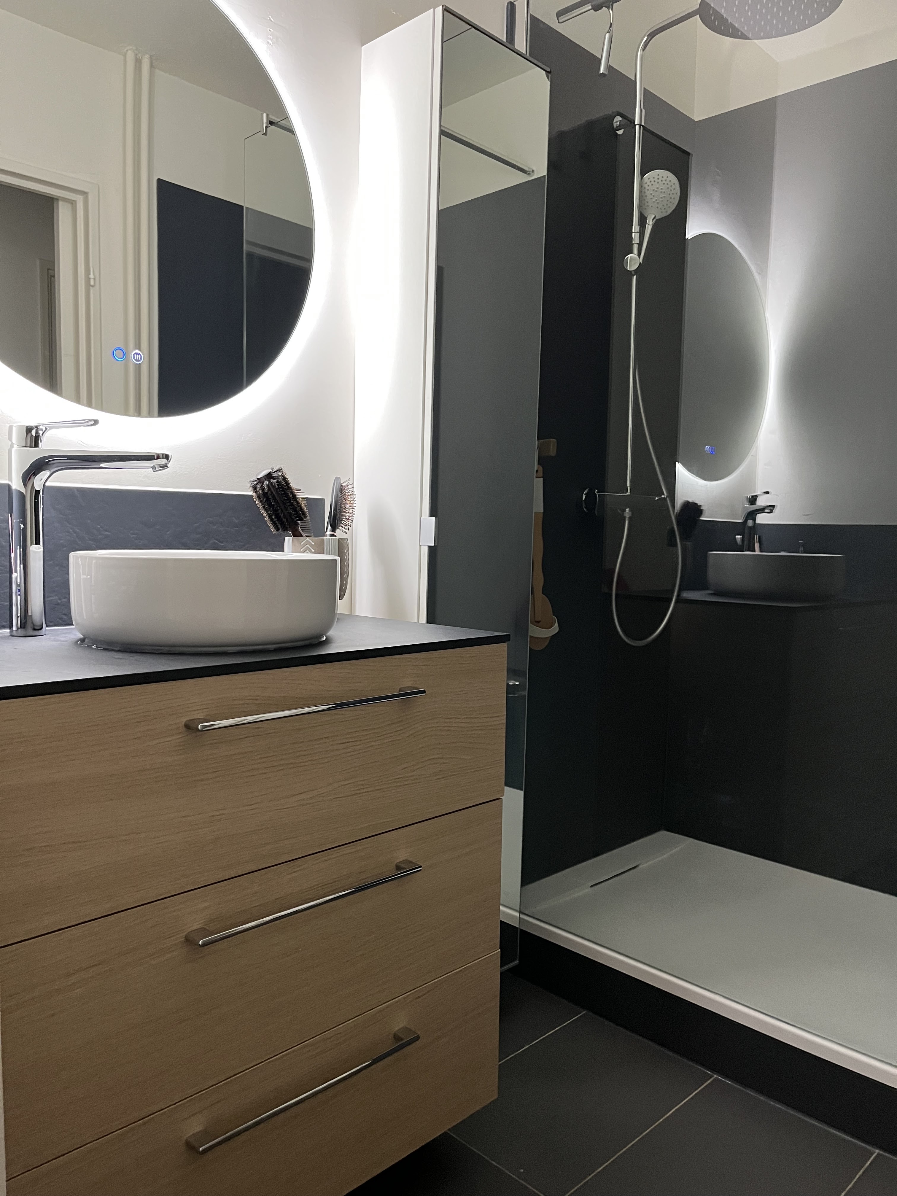Super boulot! Salle de bain et WC refraient à neuf, électricité, carrelage, plomberie, douche, peinture...