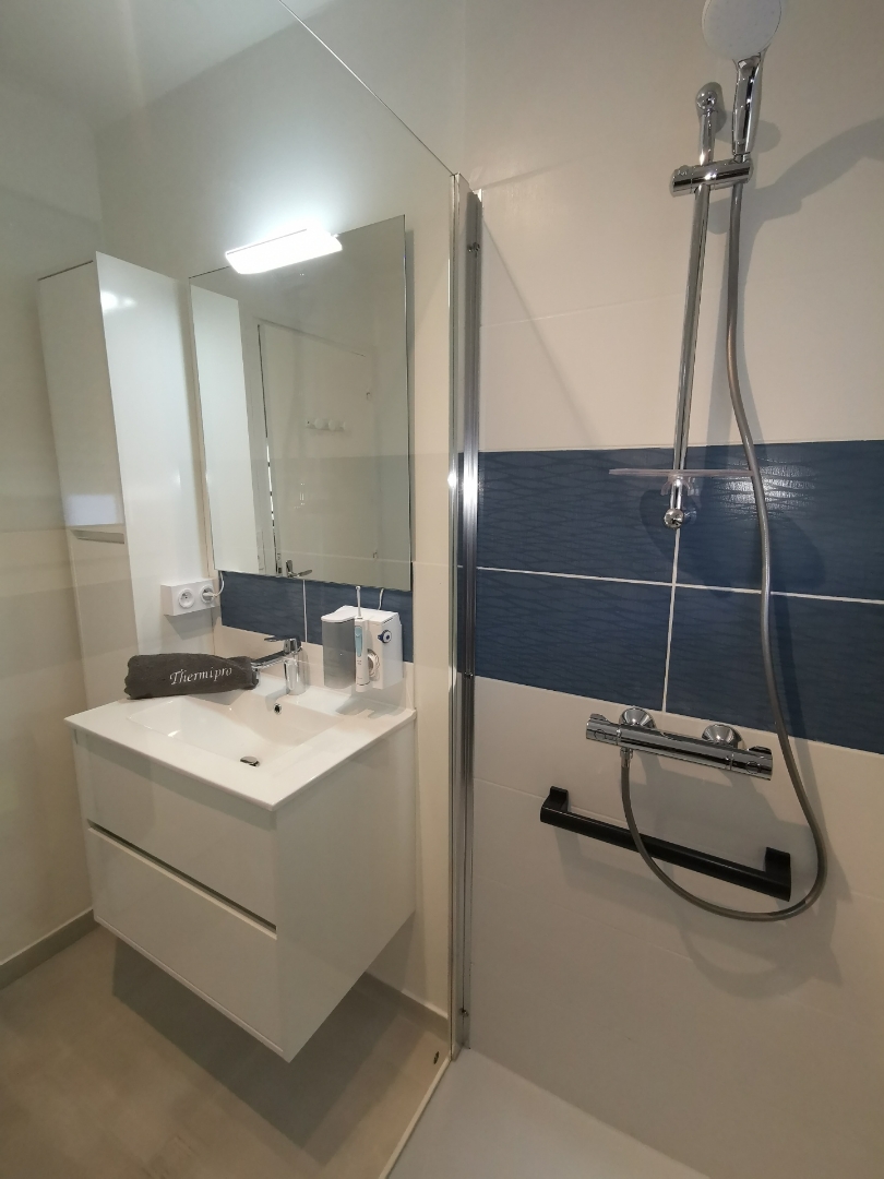THERMIPRO Sanitaire Chauffage Plomberie a rénové totalement une salle de bain en l'adaptant à la norme PMR - Personne à Mobilité Réduite. Les travaux ont duré 3 semaines et une attention particulière a été donnée à la personne âgée présente lors des travaux pour minimiser la gêne occasionnée et inévitable. Les travaux ont bien démarré à la date initialement prévue. La prestation livrée est de qualité supérieure. J'ai tout géré à distance depuis la région parisienne avant-pendant-après les travaux. L'équipe THERMIPRO était toujours disponible, accueillante au téléphone, et tenait compte des retours que j'ai réalisés. Les photos jointes présentent le changement avant et après les travaux et indiquent la qualité de la prestation éprouvée et validée après 1,5 ans d'usage.