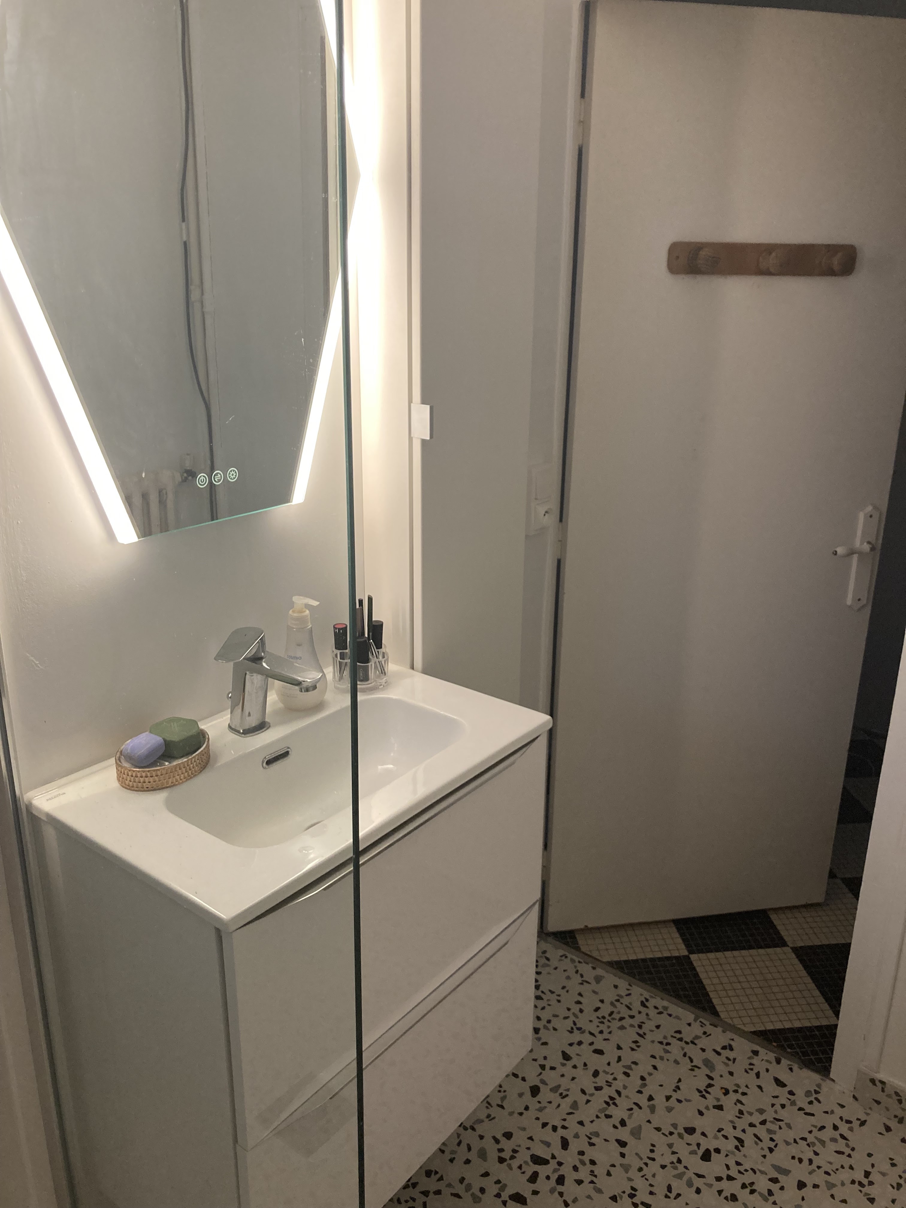 Je suis très satisfaite de son travail lors de la rénovation de mon appartement des années 1960 : dépose salle de bain ancienne ; installation nouveau meuble vasque, robinetterie, miroir, receveur et paroi de douche ; adaptation plomberie cuisine, pose d'un chauffe-eau électrique et d'un WC. Joignable et efficace, je recommande ses prestations et également le binôme de travail avec son père carreleur. Je joins quelques photos de ses réalisations (meuble vasque + miroir, receveur et colonne de douche ).